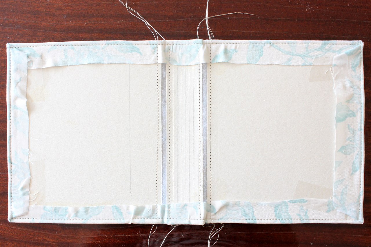 В этот же момент к обложке пришиваются и атласные ленты, на которые впоследствии будет закрываться альтбом.